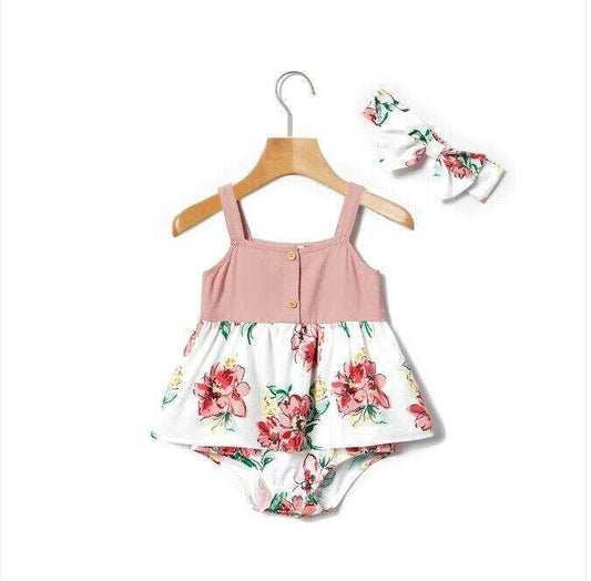 Dusty Pink & Floral Baby Dress & Bow Headband