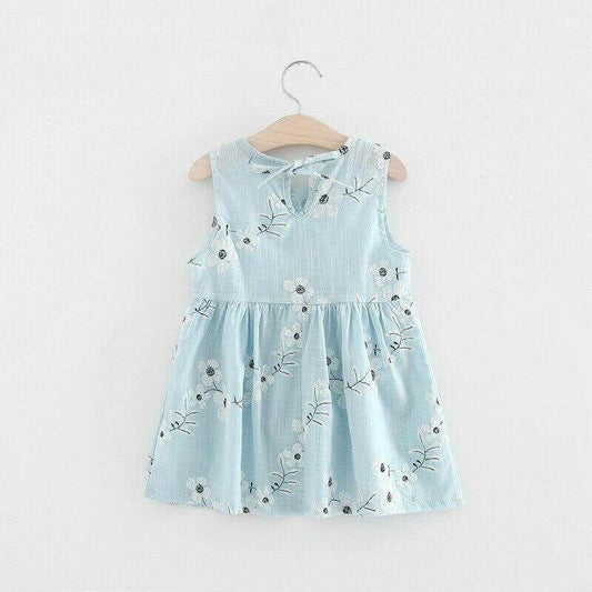 NEW Size 3-4 Years Girls Dress 100% Cotton White Flower Blue Girls Dress