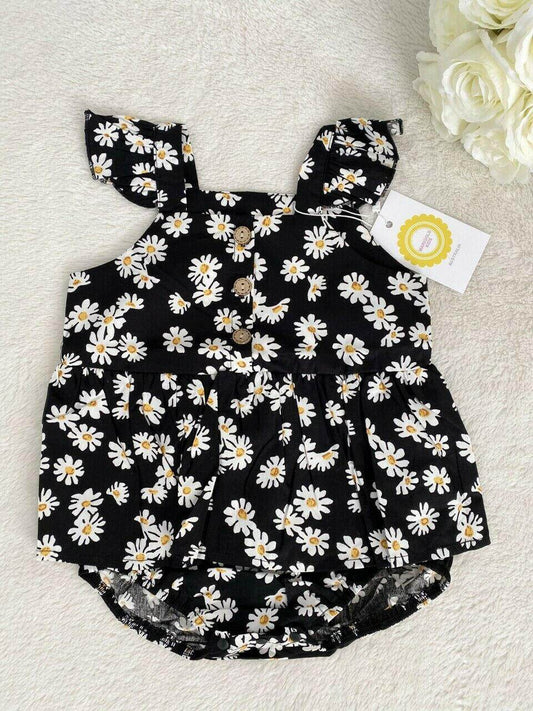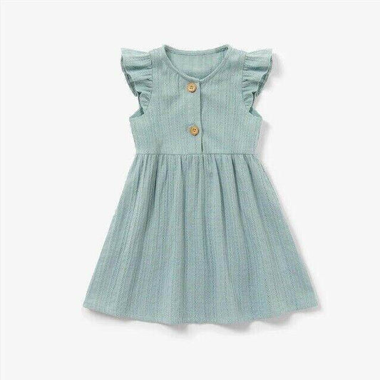 Daisy Flutter Sleeve Cotton Baby Dress - Snap and Button Details