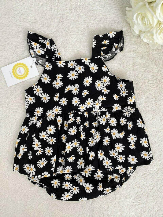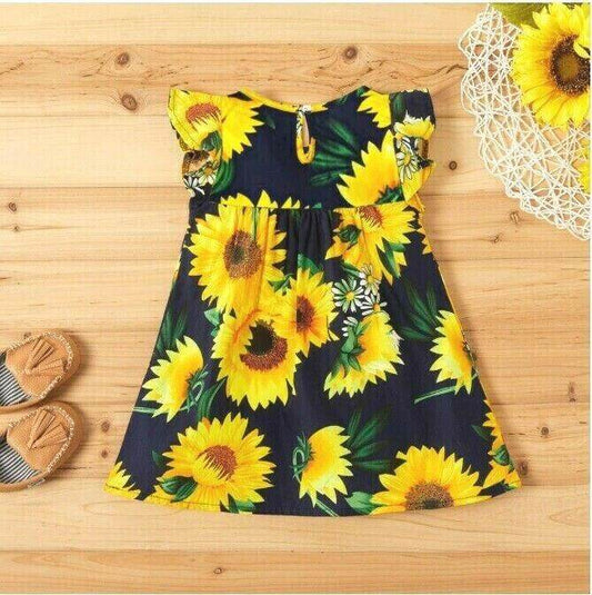 size 6-9m to 3 years 100% cotton sunflower dark blue girls dress - Select Size