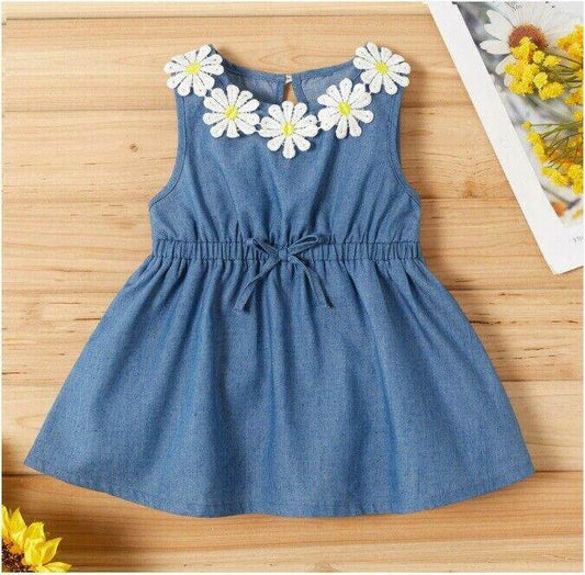 size 3-6 to 18-24 months baby dress chambray daisy applique dress - Select Size