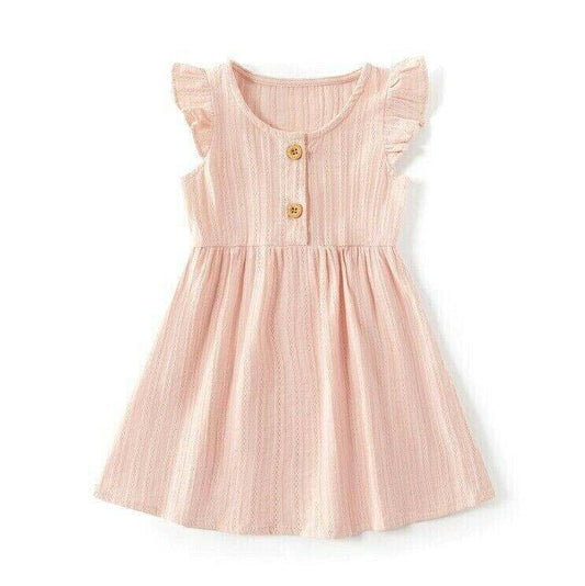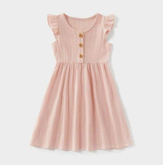 Girls Dress New Size 3-4 years 100% Cotton Pink Flutter Sleeve Button Dress