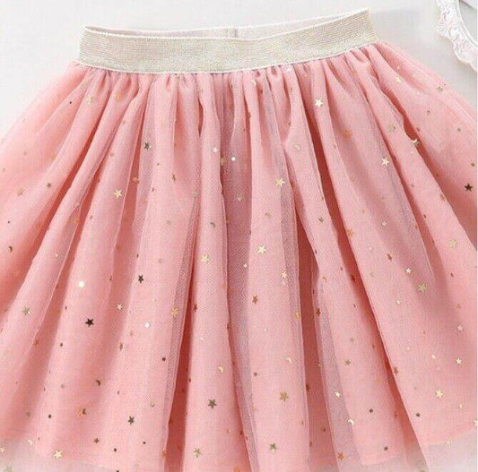 New Gold Star & Moon Sprinkle Pink Tulle Skirt Girls Pink Tulle Skirt