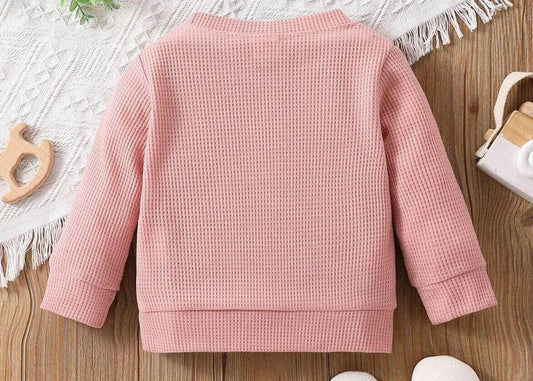 Baby and Toddler Girls Blush Pink Waffle Rainbow Long Sleeve Top