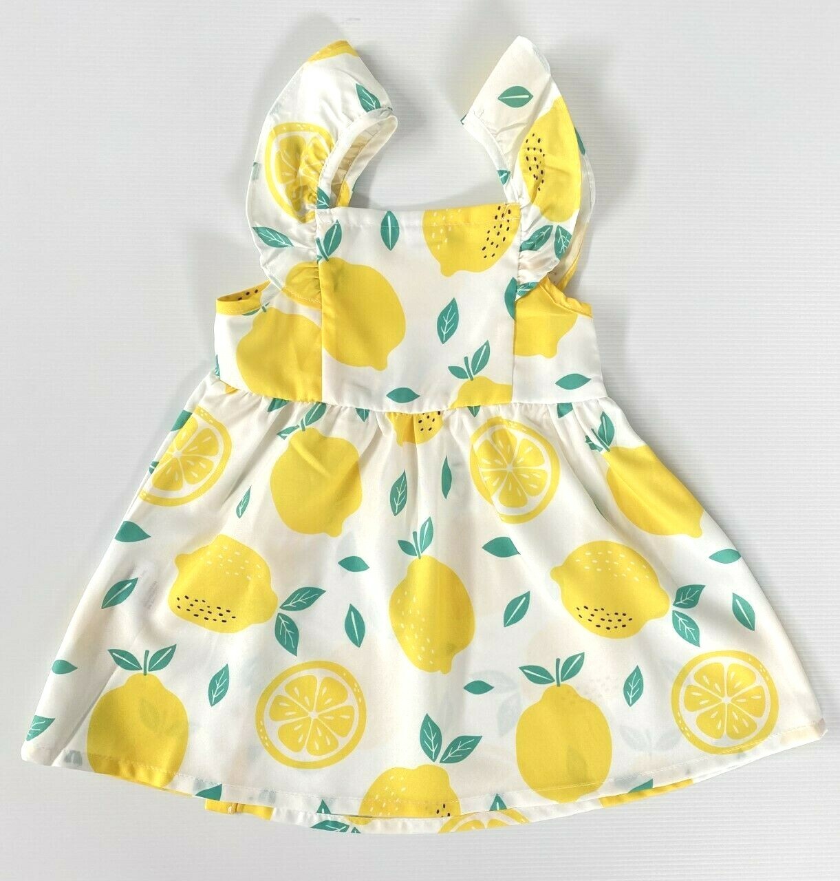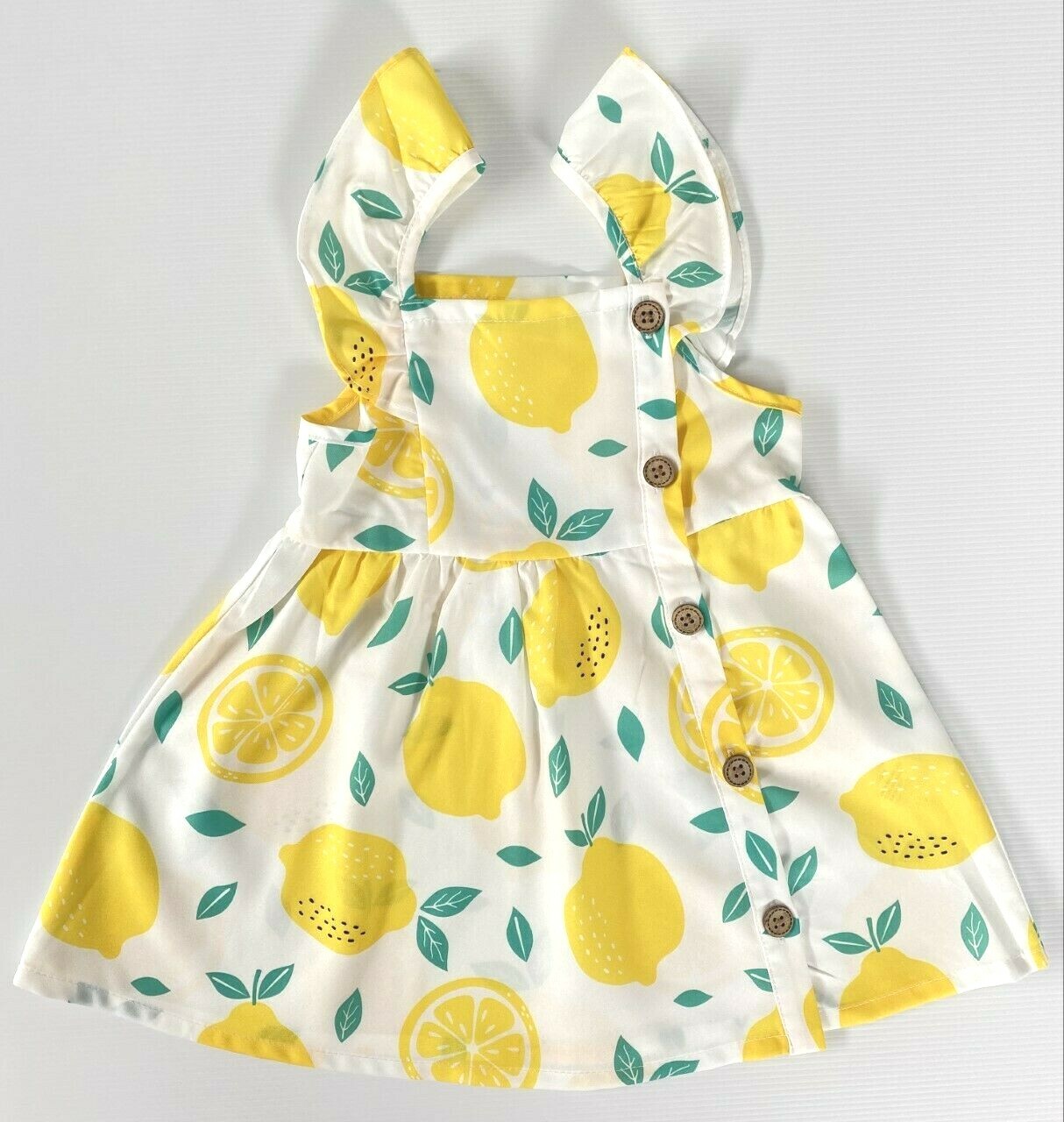 baby girls dress new yellow lemon flutter sleeve button baby girls dress