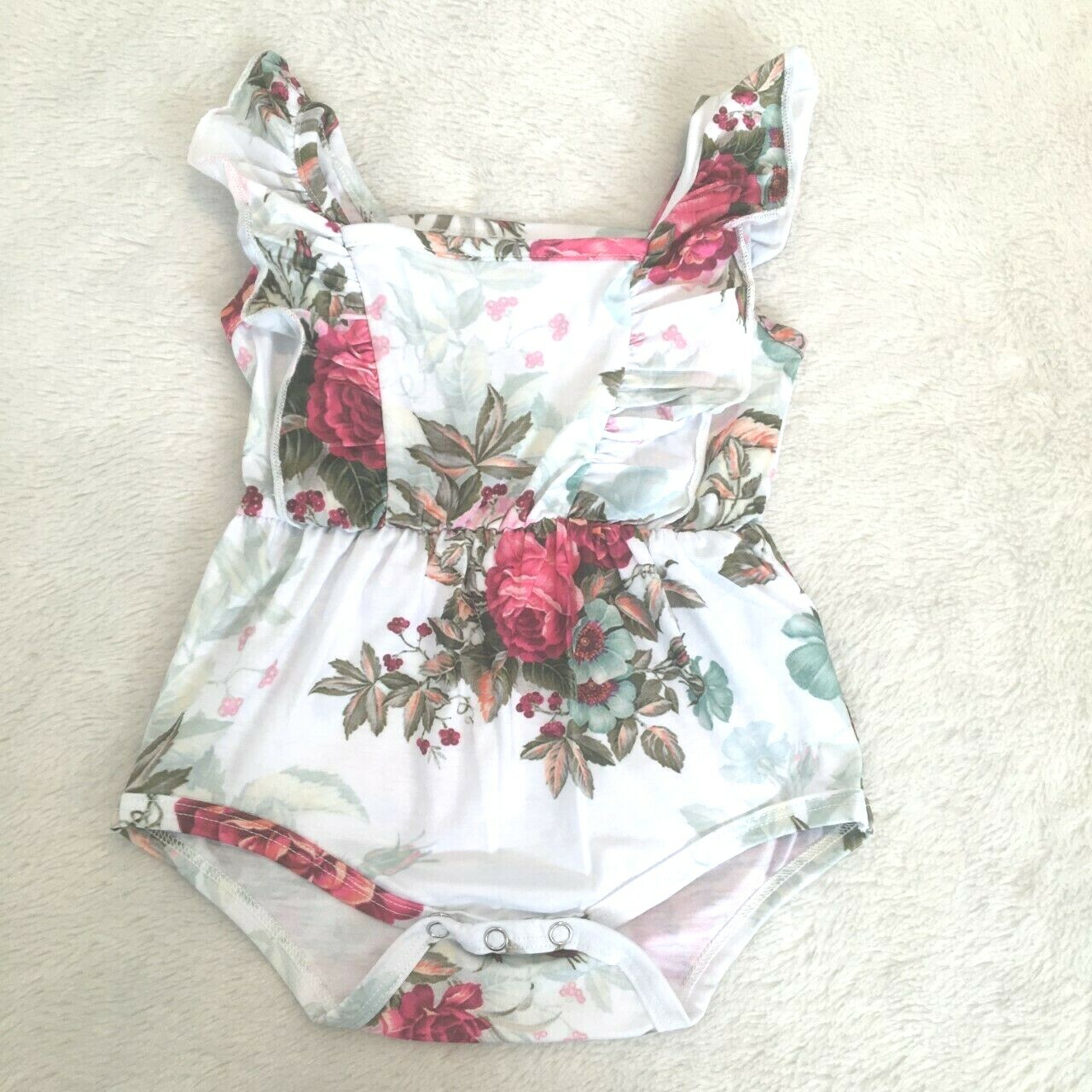 size 6-9 months new baby girls red floral ruffle sleeve baby girls romper