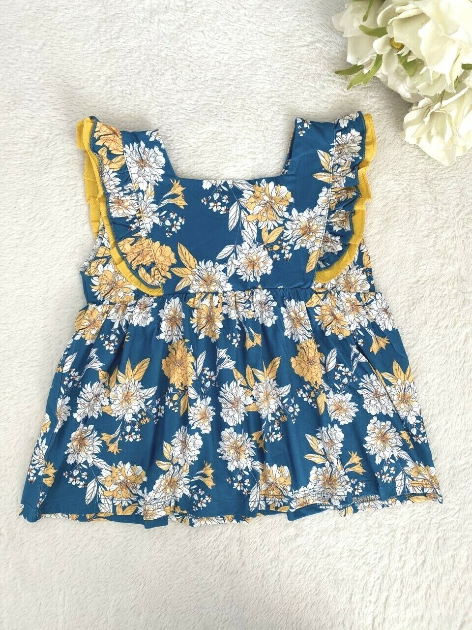 NEW Size 6-9 months / 9-12 months / 12-18 months / 18-24 months / 3 years Teal Blue & Yellow Floral Flounce Dress - Please Select Size