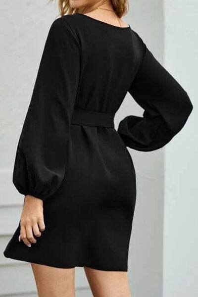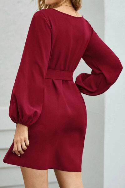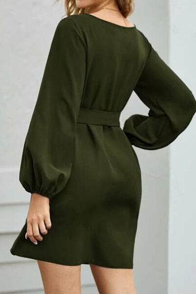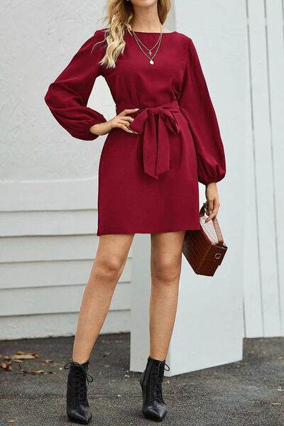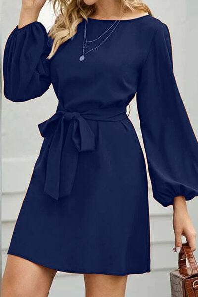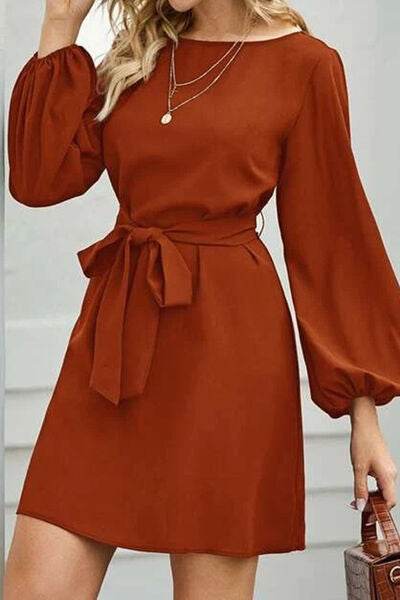 - Features: Beautiful solid colour, Balloon sleeves, Belted, Boat neckline,