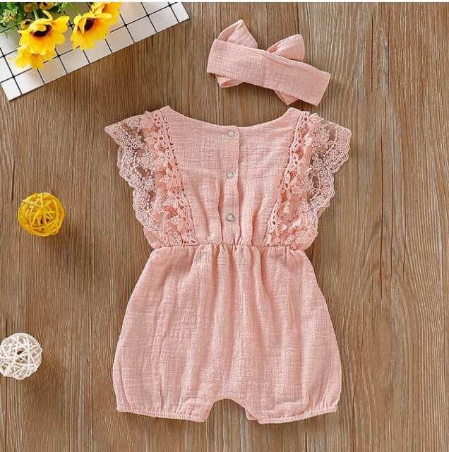 Includes: 1 Baby Romper and 1 Tie-up Baby Headband