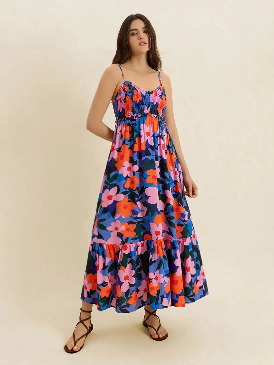 Floral Smocked Ruffle Hem Cami Midi Dress