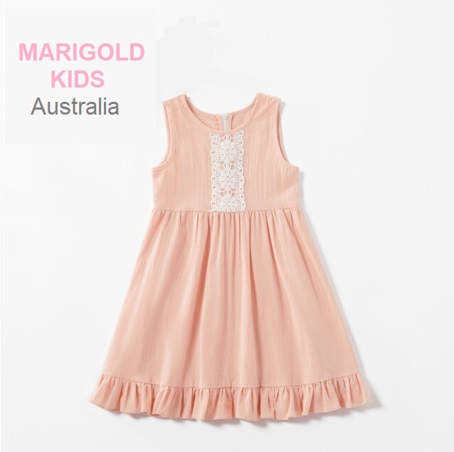 This lovely girls dress features a lace applique, is made of comfortable 100% cotton fabric and has a zipper at the back of the dress.