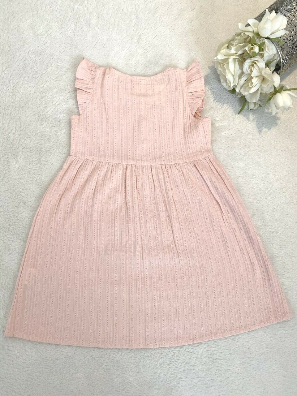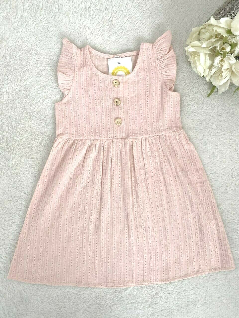 Girls Dress New Size 3-4 years 100% Cotton Pink Flutter Sleeve Button Dress