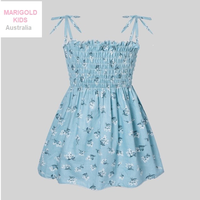 NEW Size 6-9 months / 9-12 months / 12-18 months / 18-24 months / 2-3 years New Baby Toddler Girls Dress 100% Cotton Blue Blossom Girls Dress- Select Size