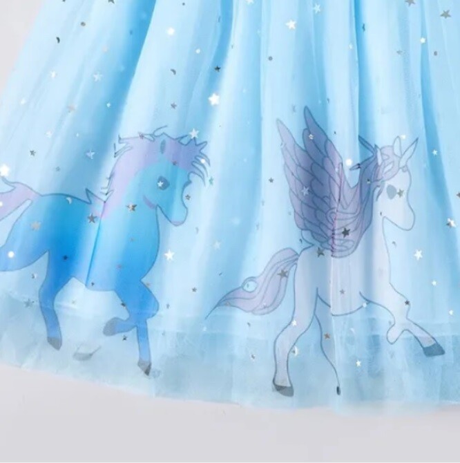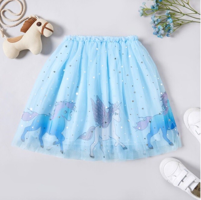 Girls Unicorn Skirt Blue Unicorn Silver Star and Moon Sprinkle Tulle Skirt