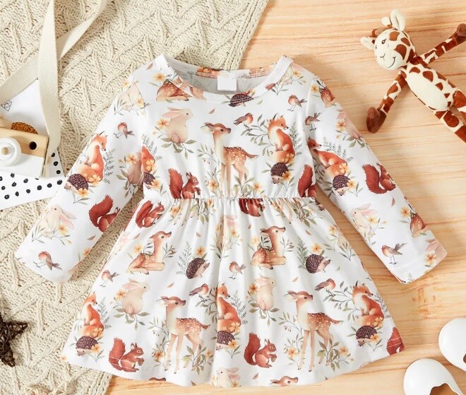 New Baby Toddler Girls Dress - Whimsical Forest Animals Print