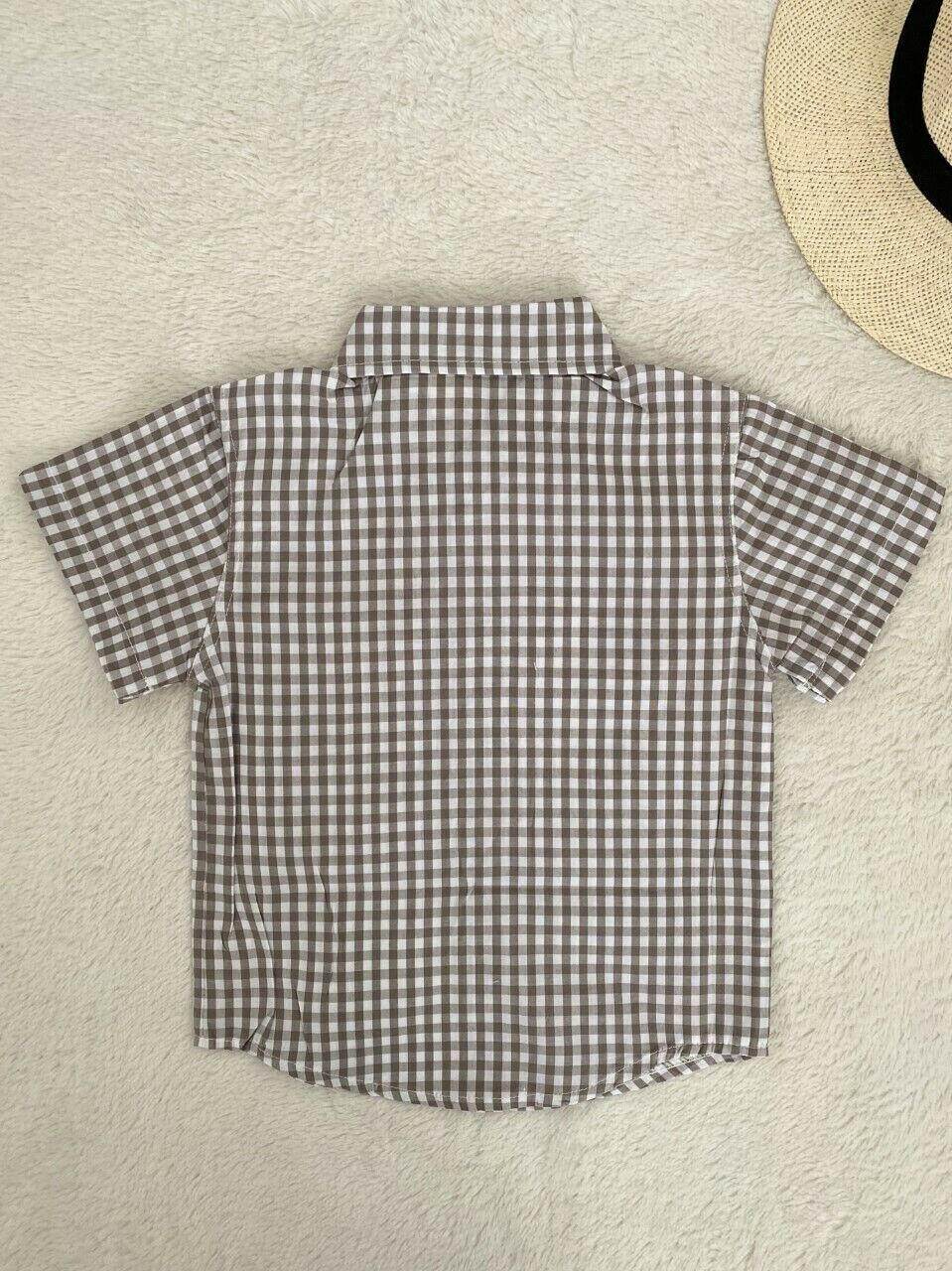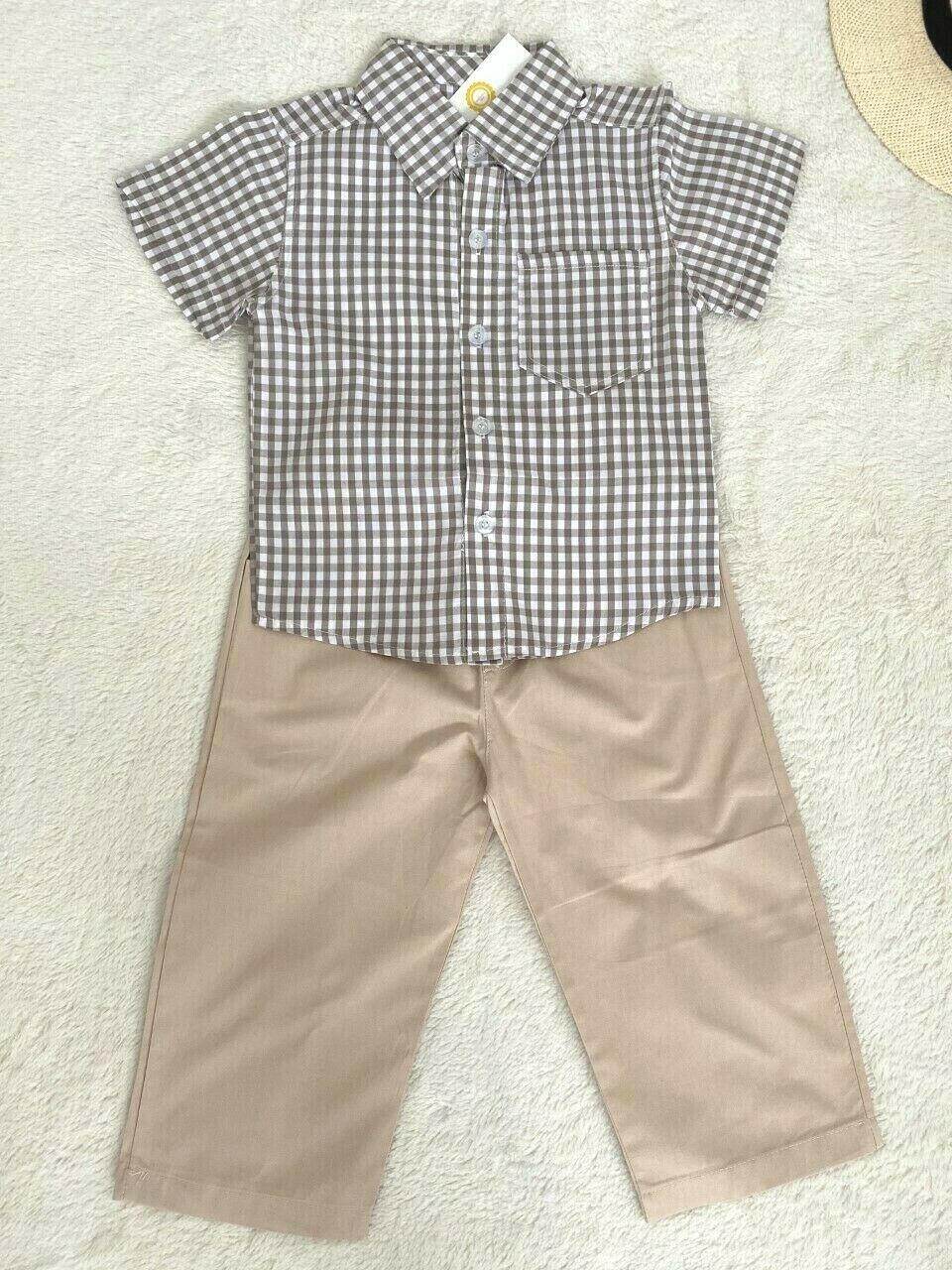 NEW Size 12 months Size 1 Toddler Boys Cute Brown Check Shirt & Beige Pants Set