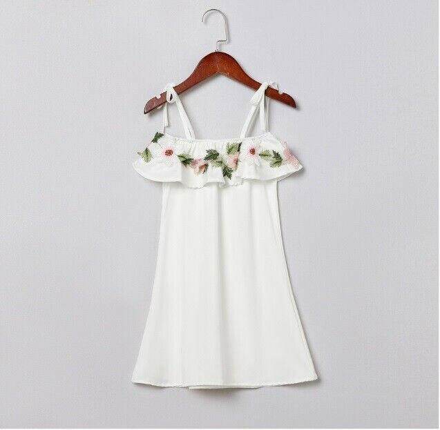 NEW Size 4-5 Years Girls Dress Flower Applique White Ruffle Top Girls Dress