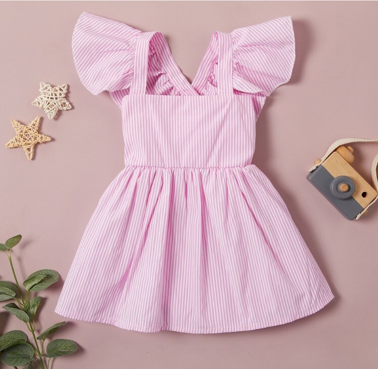 NEW Size 6-9 months Baby Girls Dress Pink Stripe Ruffle Sleeve Baby Girls Dress.