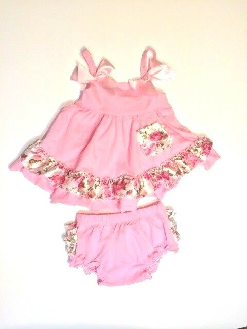 size 1 Year toddler girls top & bloomers pink floral rose ruffle top & bloomers set