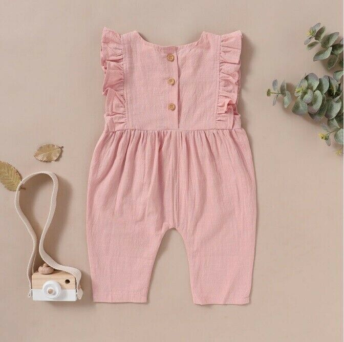 Size 12-18 Months Baby Girls Pink Ruffle Sleeve Jumpsuit
