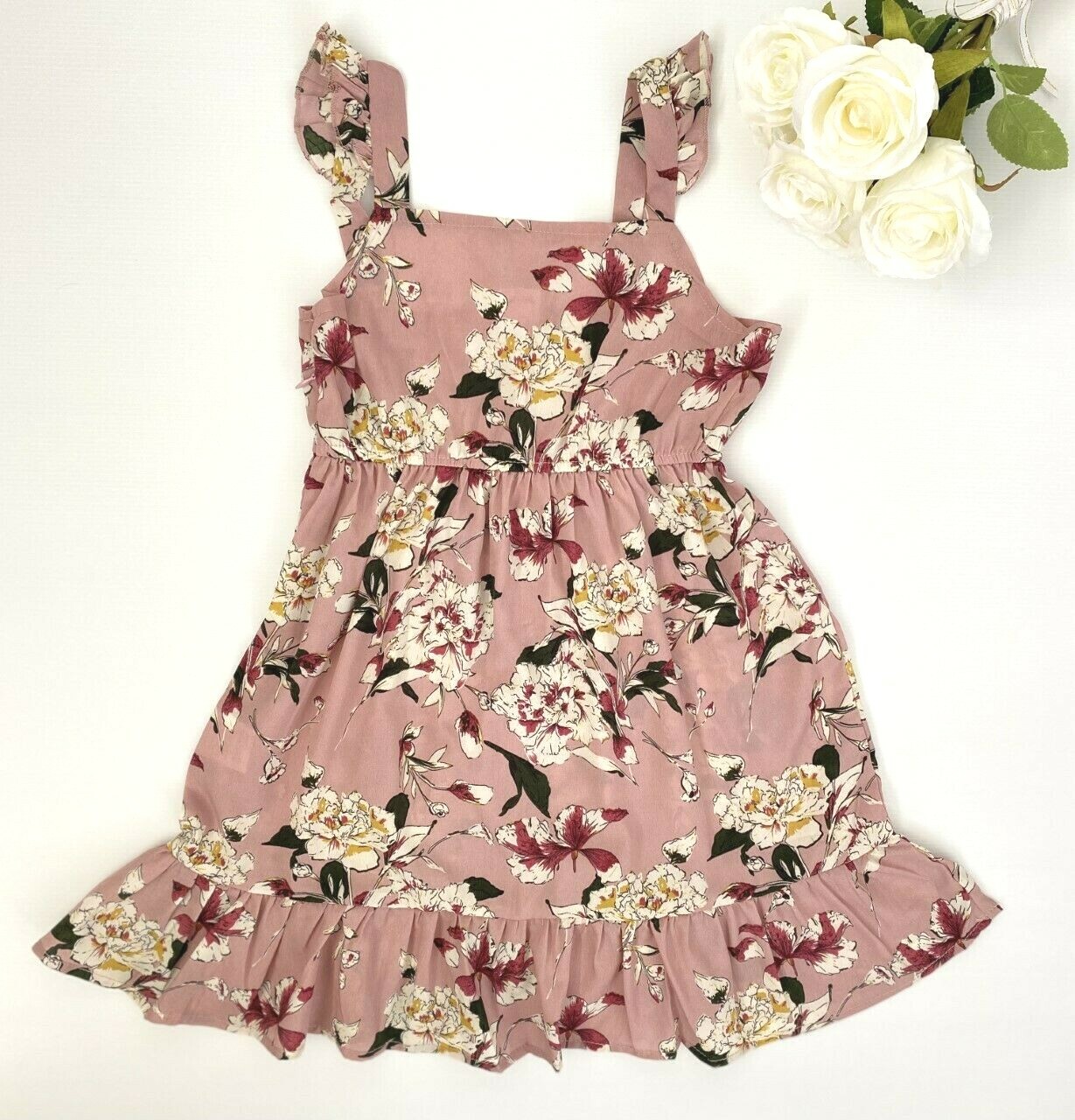 size 2y/6y/8 years new girls dress dusty pink floral flutter sleeve girls dress