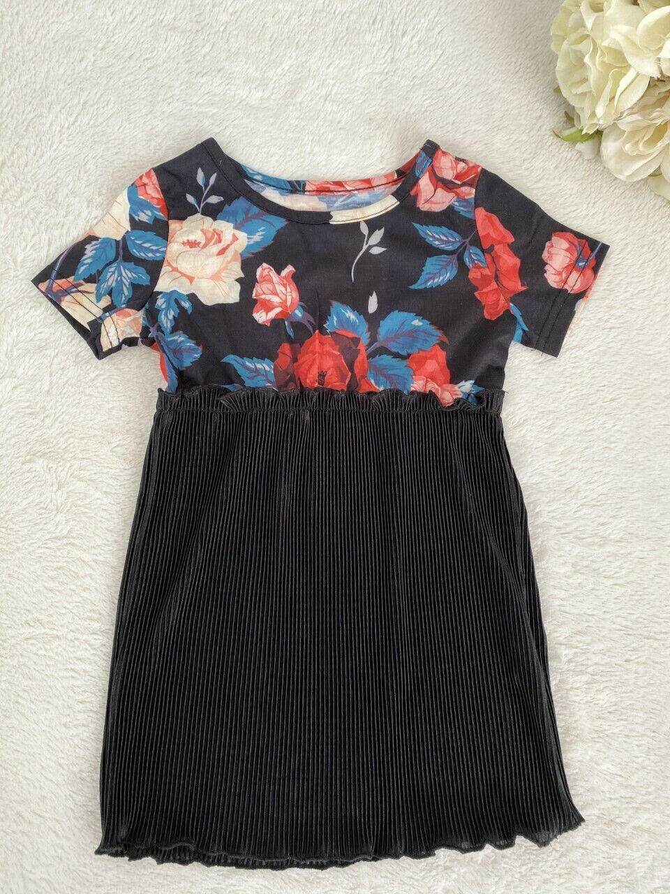 size 3-4 years new girls dress lovely rose flowers black pleat girls dress