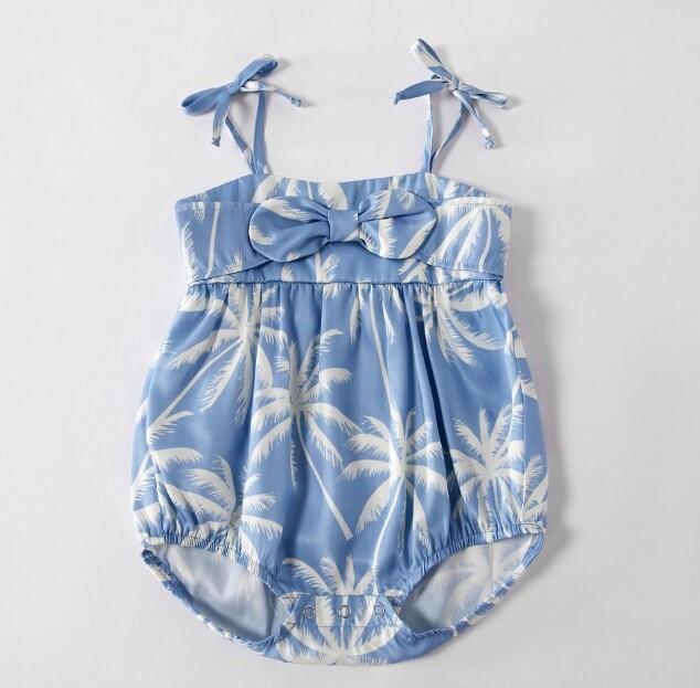 size 3-6 months new baby girls romper blue tropical palms baby girl romper