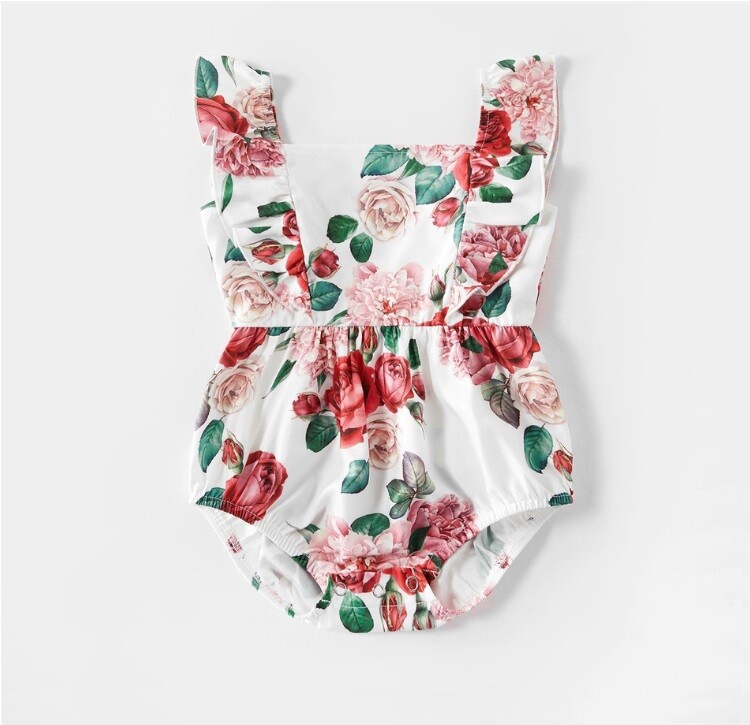 NEW Size 3-6 months Baby Girls Romper Pretty Rose Flower Baby Girls Romper
