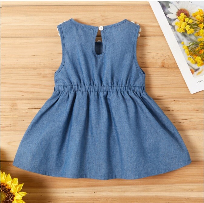 size 3-6 to 18-24 months baby dress new 100% cotton chambray daisy applique girls dress
