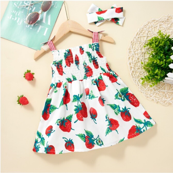 Size 3-6 months/ 6-9 months/ 9-12 months/ 12-18 months/ 18-24 months new baby toddler girls dress strawberry print dress & headband set