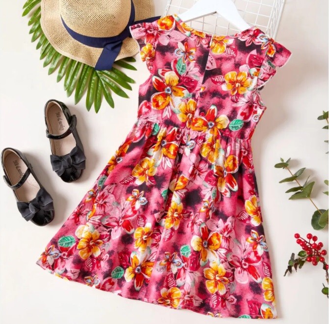 size 4-5 years / 5-6 years / 7-8 years / 8-9 years / 9-10 years / 10-11 years / 11-12 years new pink tropical floral flutter sleeve girls dress