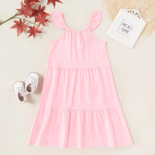 size 4 years / 7 years girls dress pink flutter sleeve tiered dress-select size