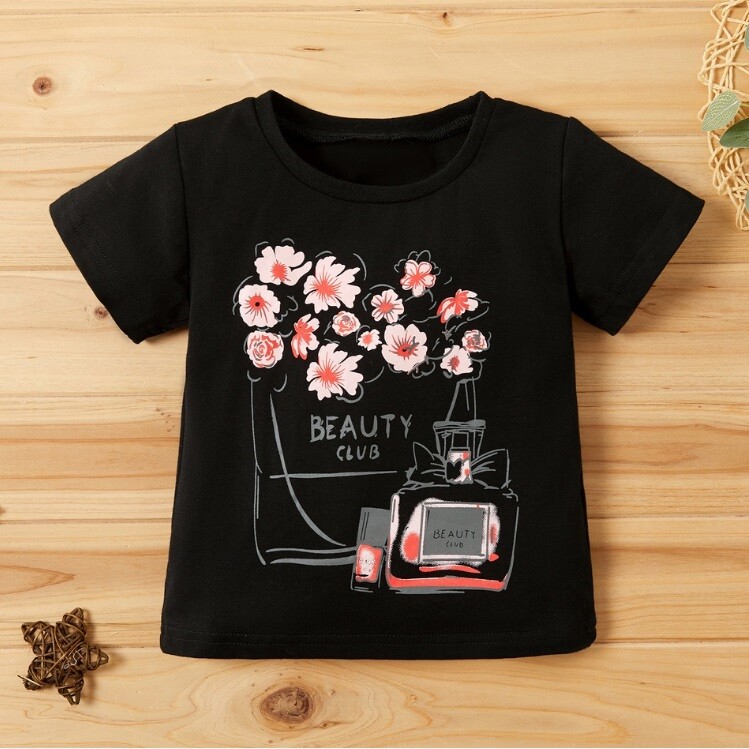 size 6-9 months new baby girls black t-shirt 'Beauty Club' perfume & flower tee