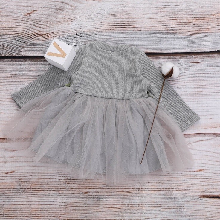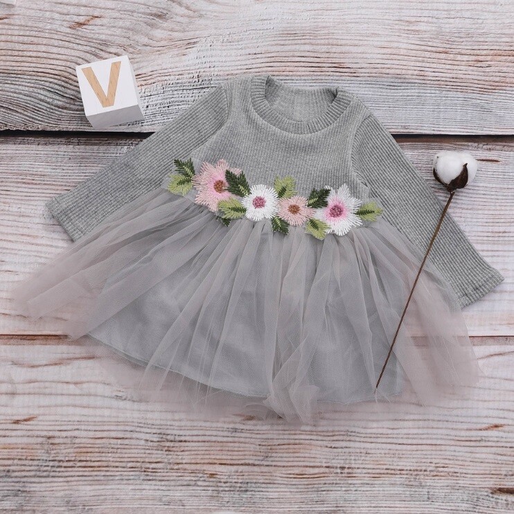 size 6-9 months new baby girls dress grey long sleeve flower waist tulle dress