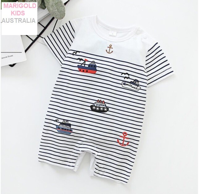 NEW Size 6-9 months / 9-12 months Baby Boys Romper 100% Cotton Ship & Anchor Stripe Romper