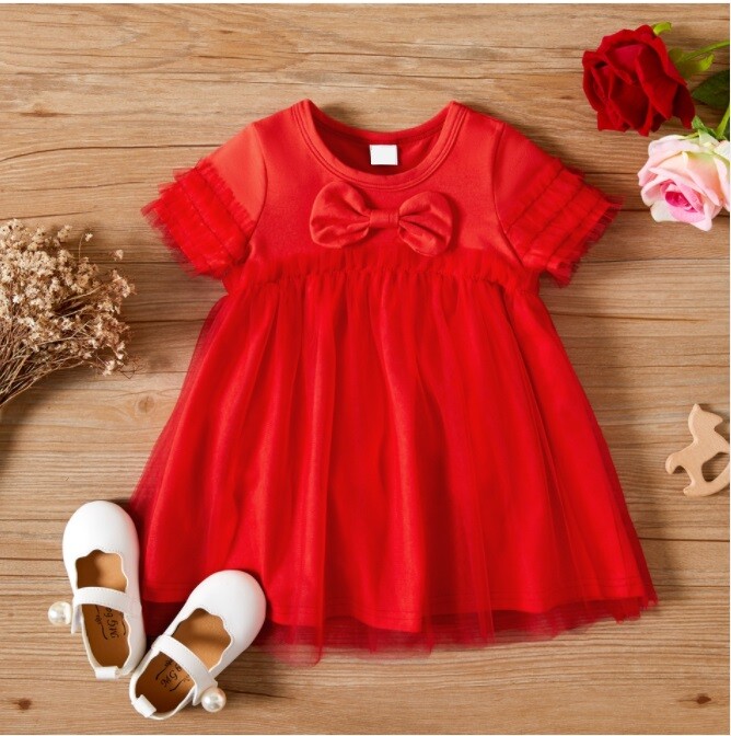 size 6-9m/9-12m/18-24m new baby toddler girls dress red bow front tulle dress