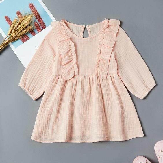 size 9-12 months new baby girls dress pink long sleeve ruffle baby girls dress